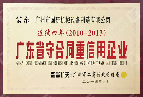 2014年7月,广州市星空官方网站设备制造有限公司获得由广东省工商行政管理局授予的2013年度“广州省守合同重信用企业”荣誉称号。这是公司连续多年来多次获此殊荣。