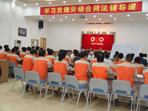 5月9日下午,广州市国砚实业发展有限公司、广州市星空官方网站设备制造有限公司在总部大会议厅举行了声势浩大的学习《劳动合同法》活动。该活动由公司党支部书记、副总经理王声跃主持,广东注明律师事务所——广东德法理律师事务所、我司常年法律顾问黄文芳主任律师担任主讲。