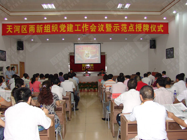7月2日下午,天河区“两新组织”党建工作现场会暨党建工作示范点授牌仪式在广州市星空官方网站设备制造有限公司隆重举行。天河区委常委、组织部部长潘文捷、广州市委组织部组织处处长邱培藩、天河区委组织部副部长陈璋、公司董事长兼总经理王声位、珠吉街党工委书记杜党勇、办事处主任周国栋等出席了会议。
