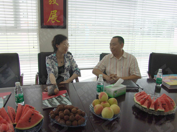 组织部长潘文捷与公司董事长王声位亲切交谈