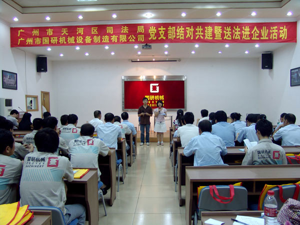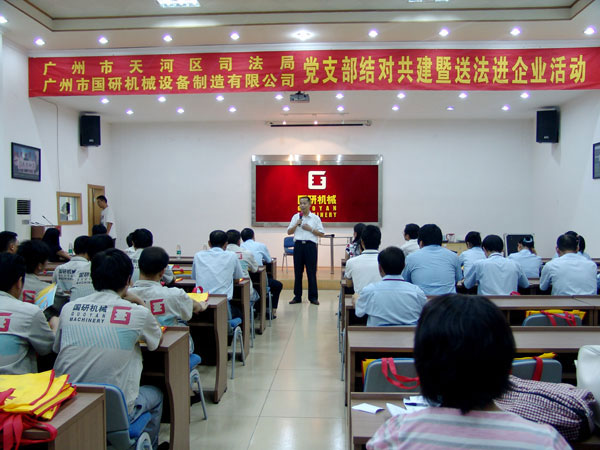 9月7日下午,广州市天河区司法局党支部和文教工作队一行18人在局长罗育辉和副局长曾晓云的带领下,来到广州市星空官方网站设备制造有限公司举行党支部结对共建暨送法进企业活动。