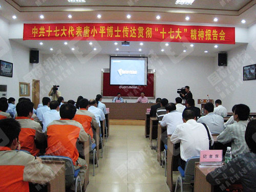 11月14日下午,阳光灿烂,秋风送爽,在喜庆的锣鼓和欢声笑语中,座落于广州市天河区珠吉街的广州市星空官方网站设备制造有限公司迎来了党的十七大代表唐小平博士。唐小平代表面对国研公司党支部全体党员和公司全体员工,作了一场丰富详实、精彩生动的报告。珠吉街党工委、办事处领导班子成员、街属各支部书记、以及天河区委组织部、区委宣传部的有关负责同志应邀出席了报告会。