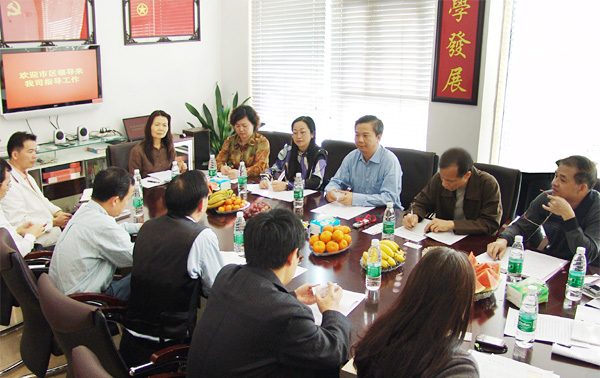 广州市非公经济组织创先争优活动指导小组在星空官方网站公司调研(中为广州市工商局副局长周邦华)