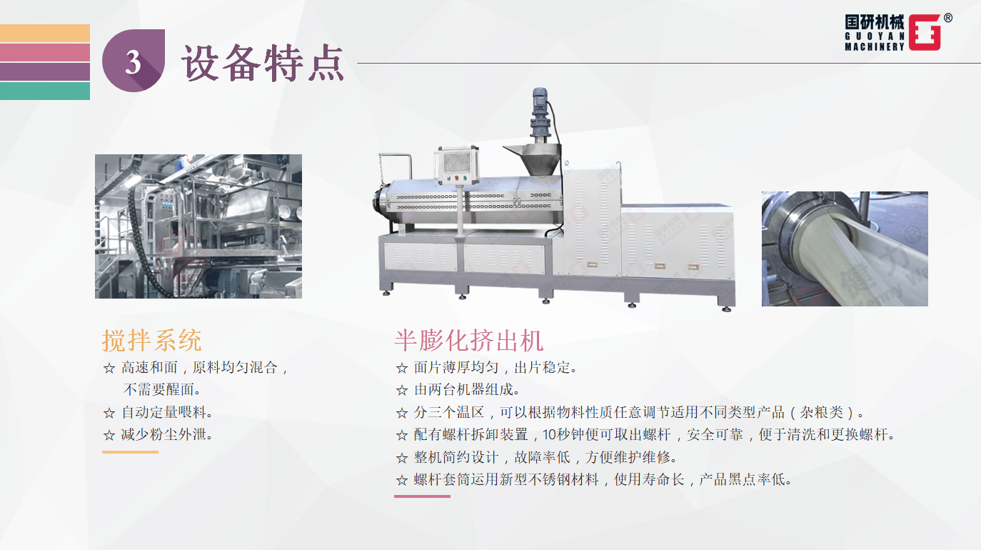 挤出宽面生产线特点: